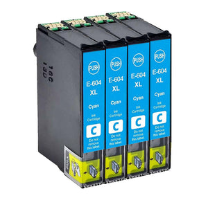 4 Compatible Cyan Ink Cartridges, For Epson 604XL, T10H2, NON-OEM
