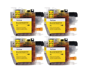4 Yellow Compatible Ink Cartridges, Replaces For Brother LC-3219XLY NON-OEM