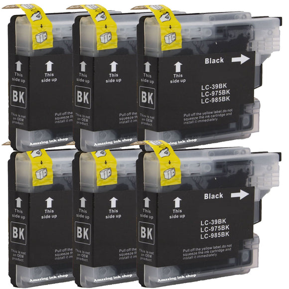 6 Black Compatible Ink Cartridges, For Brother LC985, LC-985BK NON-OEM