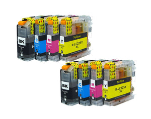 8 Compatible Ink Cartridges, For Brother LC225XLCMY, LC227XLBK NON-OEM