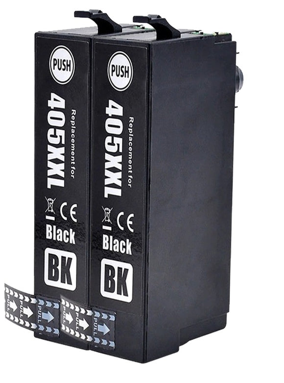 2 Compatible Black Ink Cartridges, Replaces For Epson 405XXL, T02J1, NONOEM