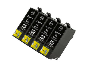 4 Compatible e34XL Black Ink Cartridges, For Epson 34XL, T3471, NONOEM