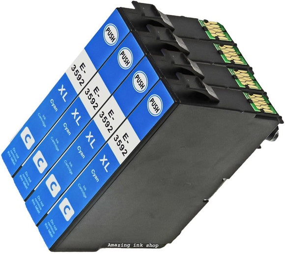 4 Compatible 35 XL, Cyan Ink Cartridge, Replaces For Epson 35XL, T3592, NON-OEM