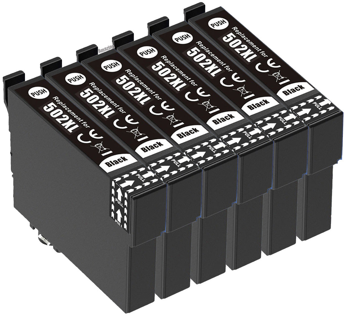 6 Compatible High Capacity Black Ink Cartridges, For Epson 502XL, T02W1, Non-OEM