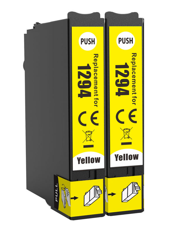 2 Compatible Yellow Ink Cartridges, Replaces For Epson 24XL, T2434, NON-OEM