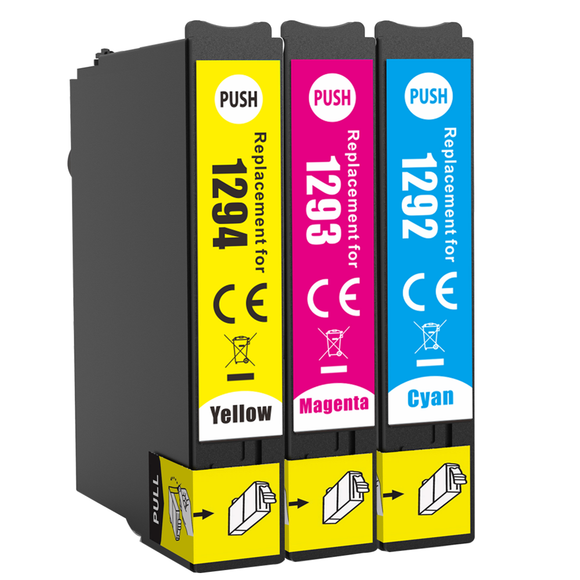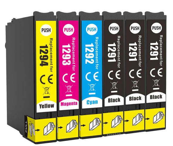 6 Compatible Ink Cartridges, Replaces For Epson T1292, T1293, T1294, NON-OEM