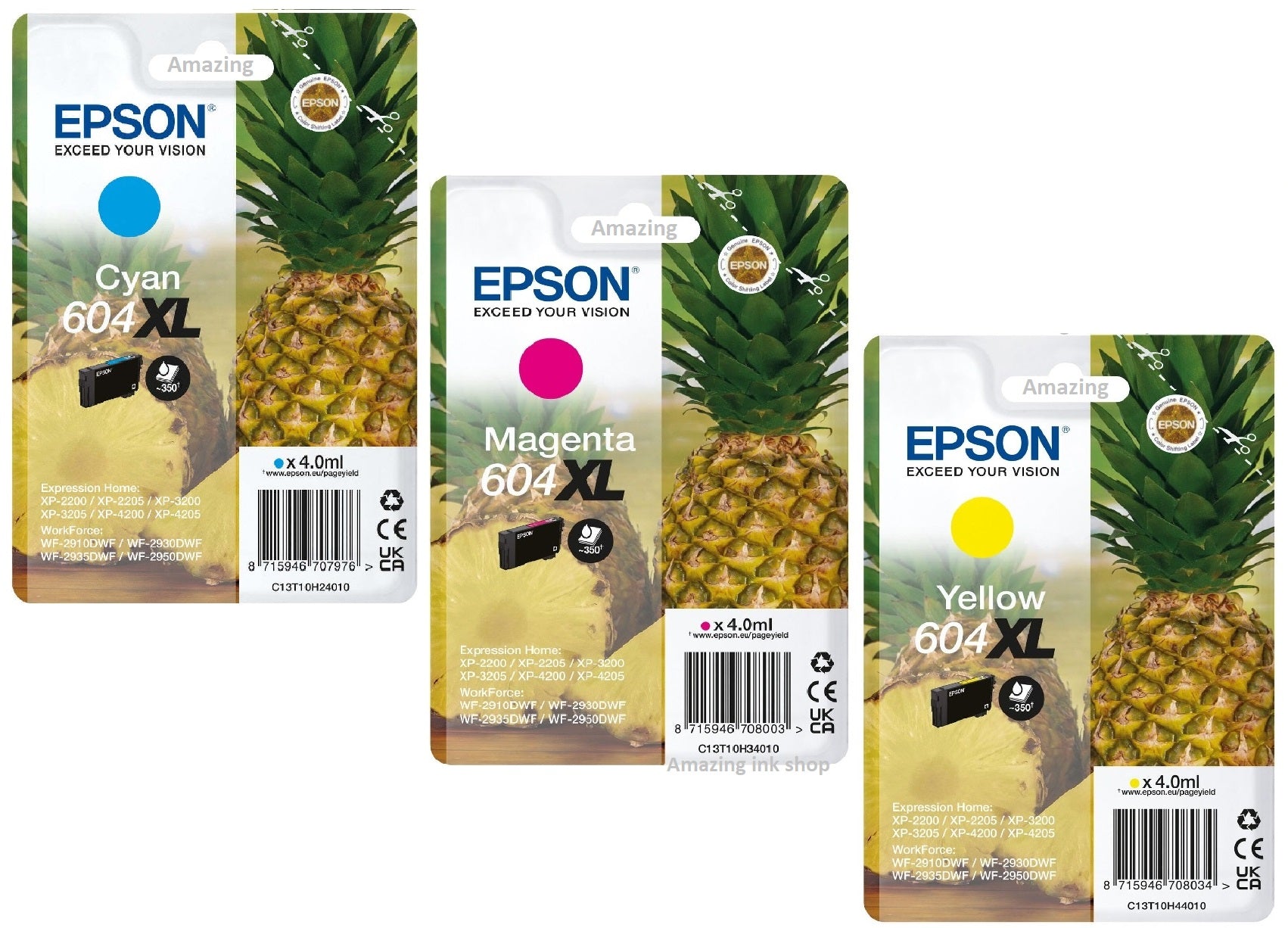 Genuine Epson 604XL, Pineapple 3-Colour Ink Cartridges, T10H5, (Vacuum Sealed)