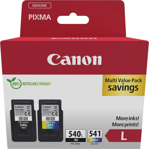 Canon Black & Tri-Colour Multipack Ink Cartridges, PG-540L, CL-541 (5224B013)