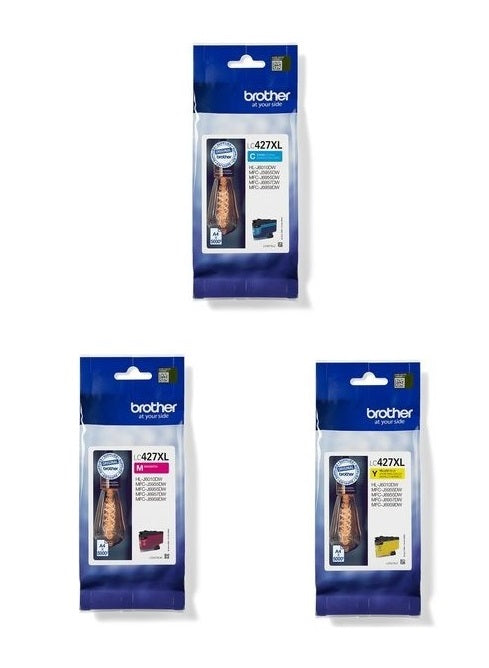 Genuine Brother LC427XL, 3 Colour Ink Cartridges, LC427XLC, LC427XLM, LC427XLY,