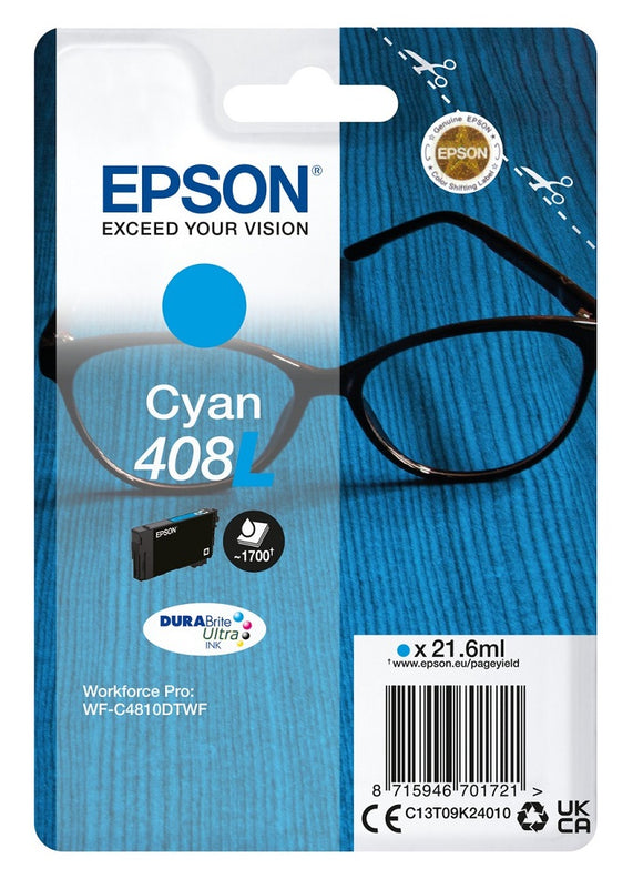 Genuine Epson 408L, Spectacles Cyan Ink Cartridge, T09K2, C13T09K24010