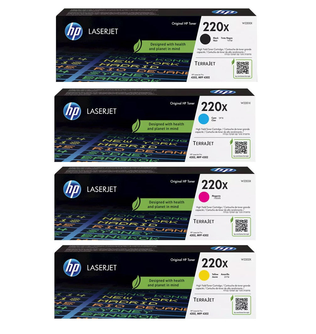 HP 220X 4 Colour Toner Cartridge Multipack, W2200X, W2201X, W2202X, W2203X
