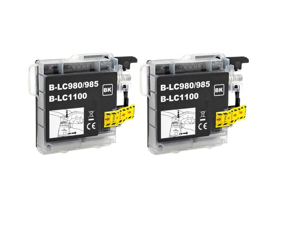 2 Black Compatible Ink Cartridges, Replaces For Brother LC-980BK, LC-1100BK NON-OEM