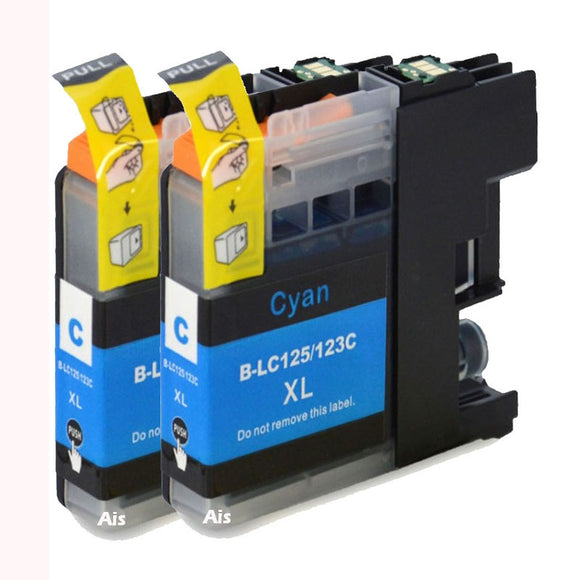 2 Compatible Cyan Ink Cartridge, Replaces For Brother LC125XLC, NON-OEM