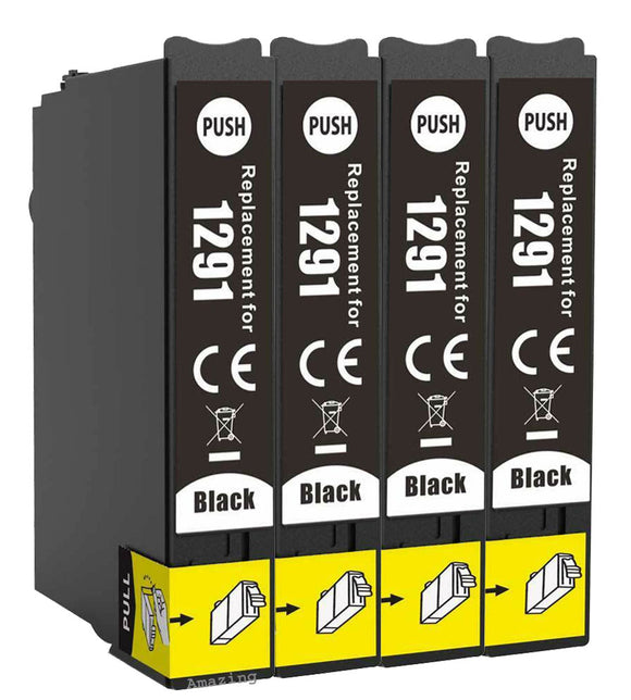 4 Compatible Black Ink Cartridges, For Epson T1291, NON-OEM