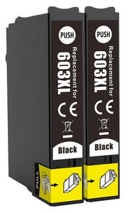 2 Compatible Black Ink Cartridge, Replaces For Epson 603XL, T03A1, NON-OEM