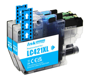 2 Compatible Cyan Ink Cartridge, Replaces For Brother LC421XLC NON-OEM