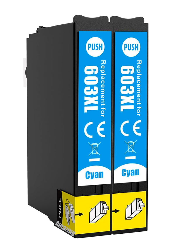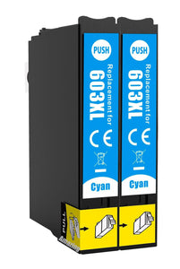 2 Compatible Cyan Ink Cartridge, Replaces For Epson 603XL, T03A2, NON-OEM