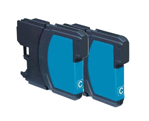2 Compatible Cyan Ink Cartridges, Replaces For Brother LC-980C, LC-1100C, NON-OEM