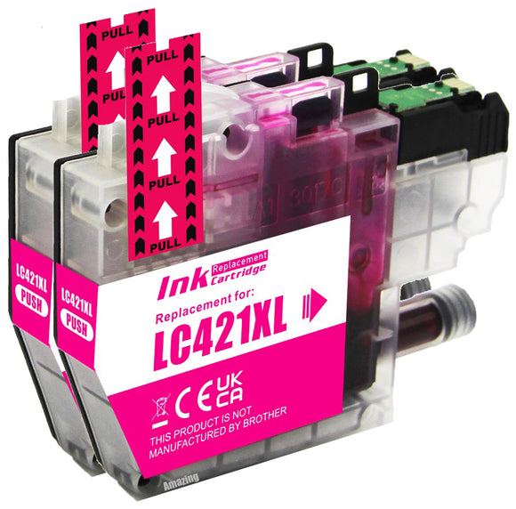 2 Compatible Magenta Ink Cartridge, Replaces For Brother LC421XLM NON-OEM