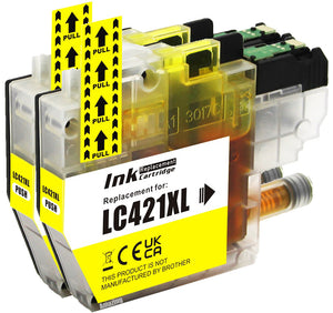 2 Compatible Yellow Ink Cartridge, Replaces For Brother LC421XLY NON-OEM