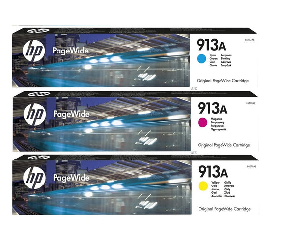 3 Genuine HP Ink Cartridges, For HP 913A, F6T77AE, F6T78AE, F6T79AE