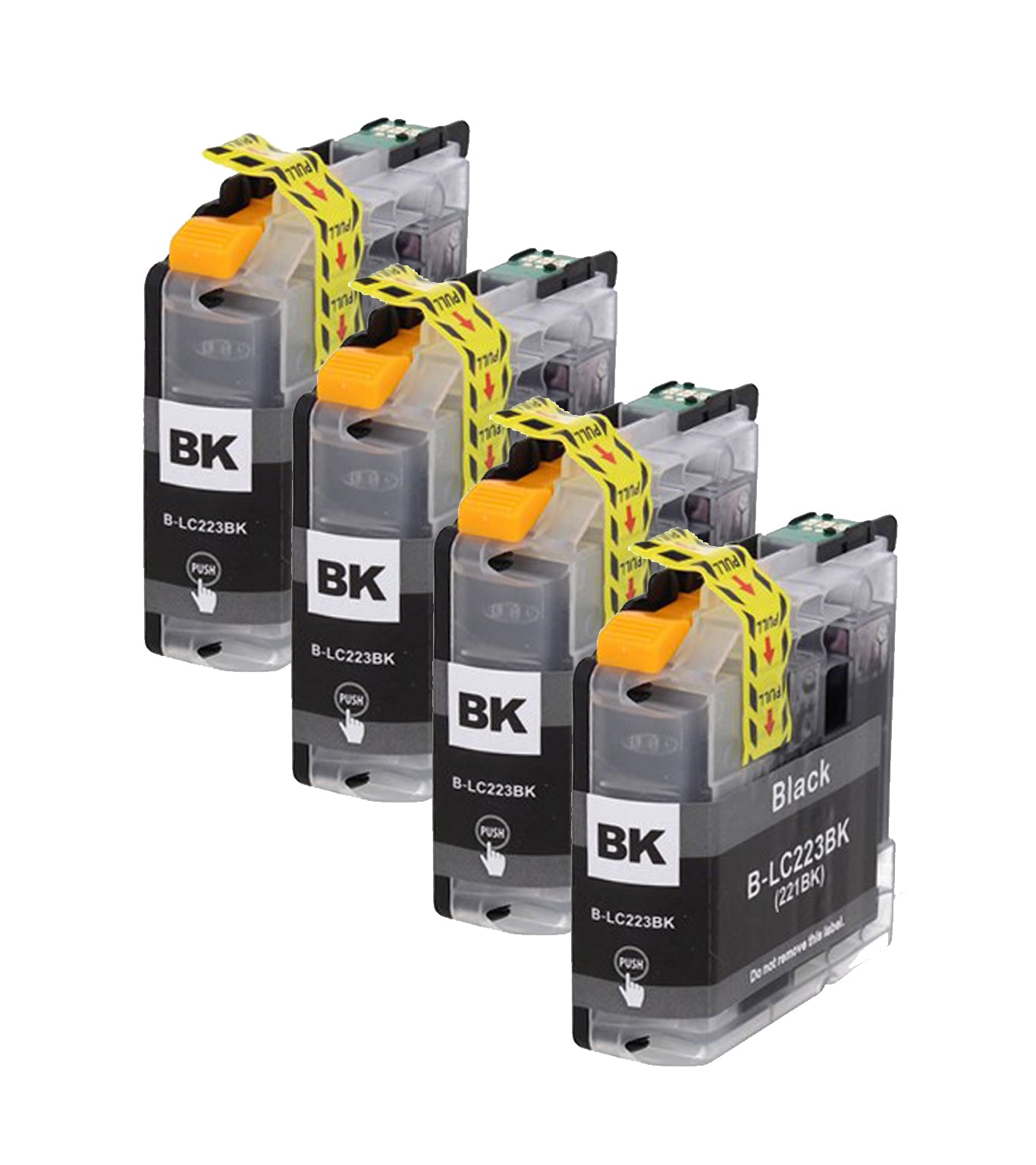 Compatible Black Set 4 Ink Cartridges, Replaces For Brother LC-223BK, NON-OEM