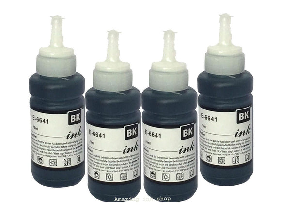 4 Compatible Black ink Bottles, Replaces For Epson EcoTank 664, T6641, NON-OEM