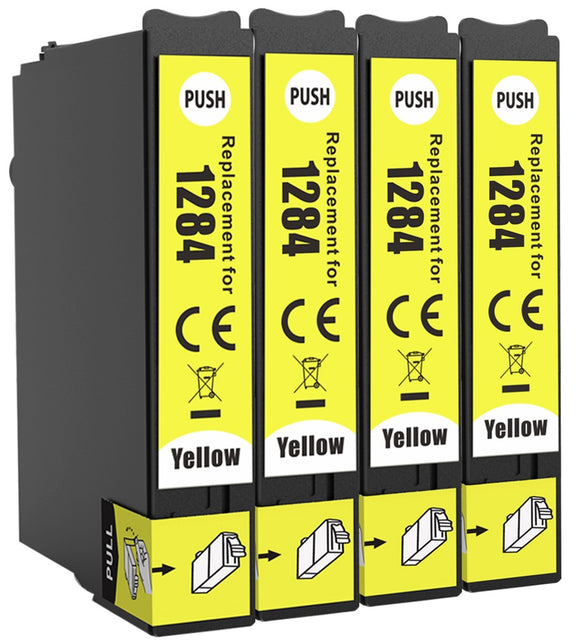 4 Compatible 1284, Yellow Ink Cartridge, Replaces For Epson T1284, NON-OEM