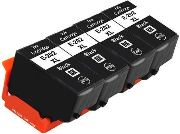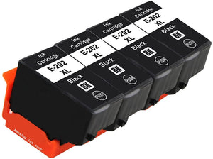 4 Compatible Black Ink Cartridges, Replaces For Epson 202XL, T02G1, NON-OEM