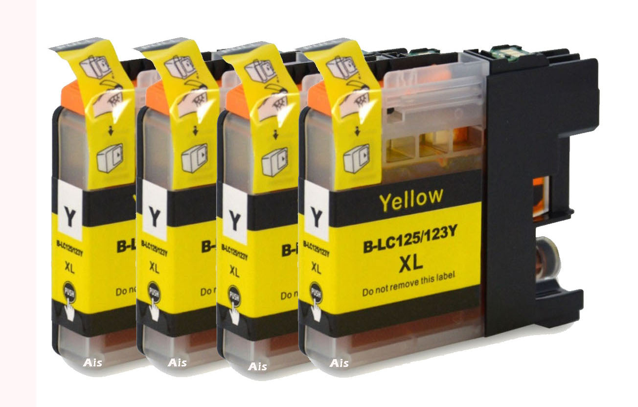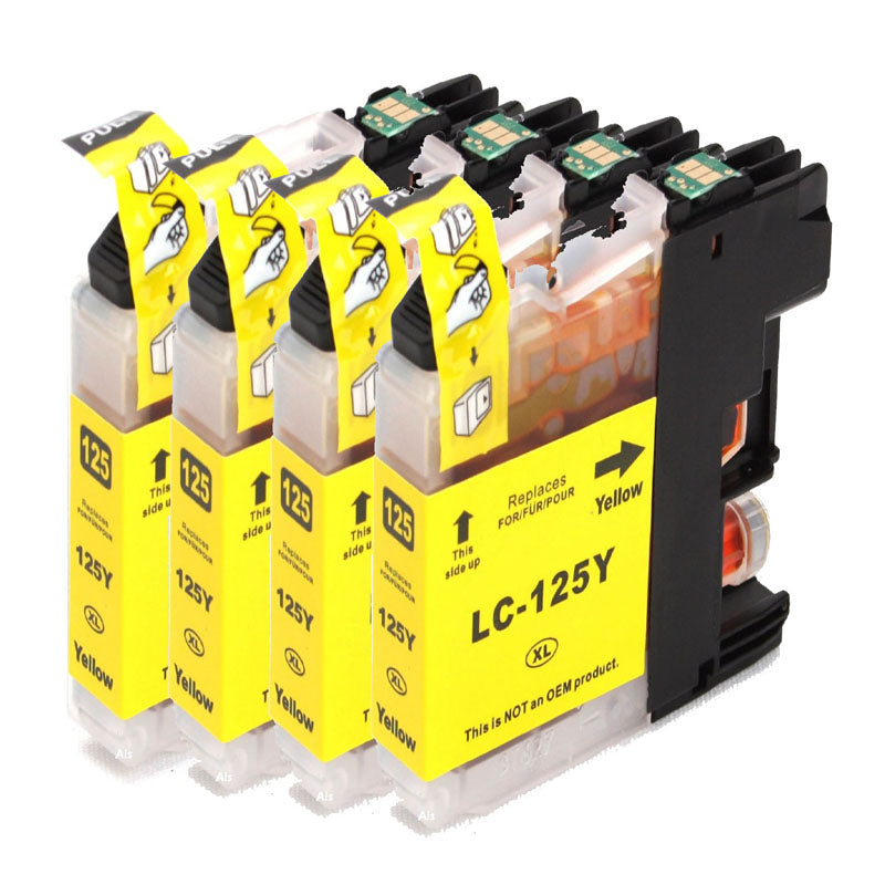 4 Compatible Yellow Ink Cartridge Replaces For Brother LC125XLY, NON-OEM