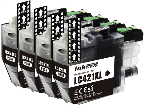 4 Compatible Black Ink Cartridge, Replaces For Brother LC421XLBK NON-OEM