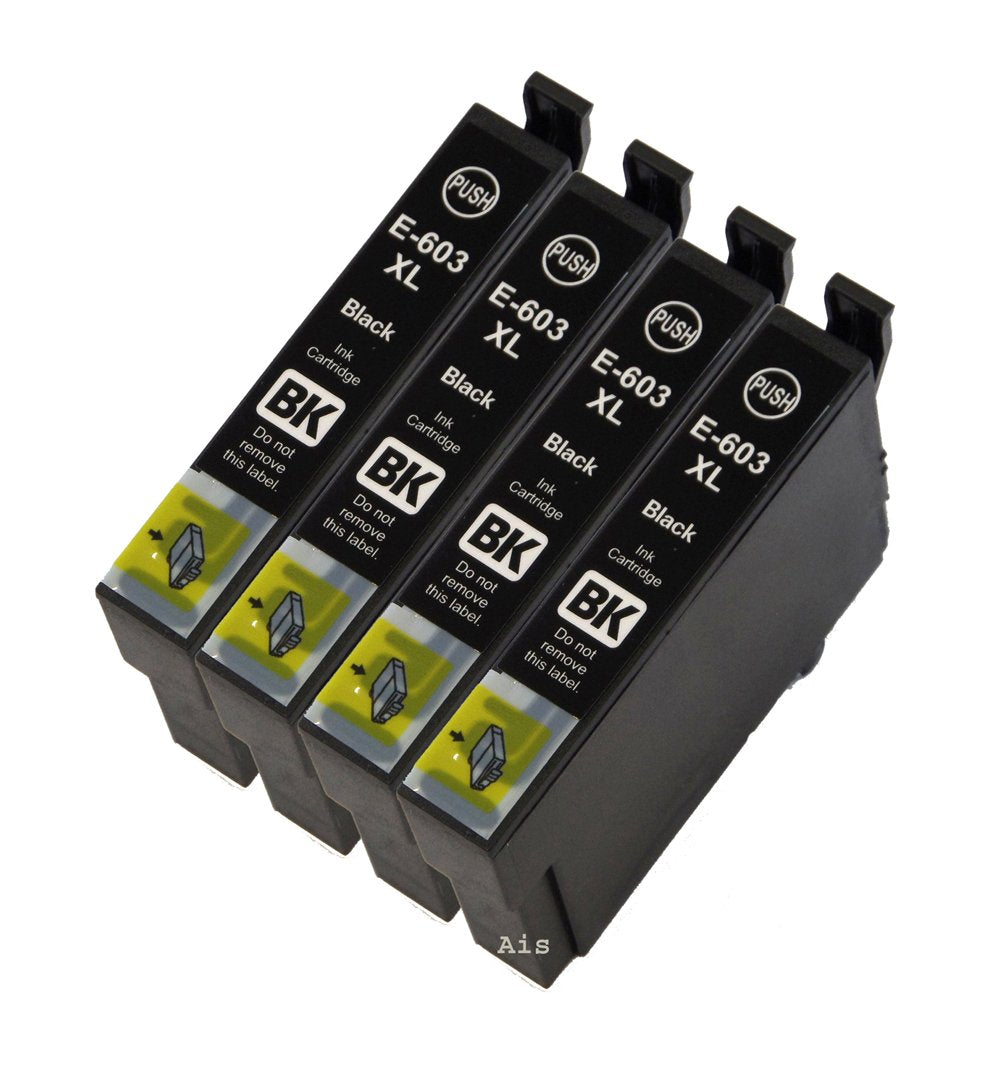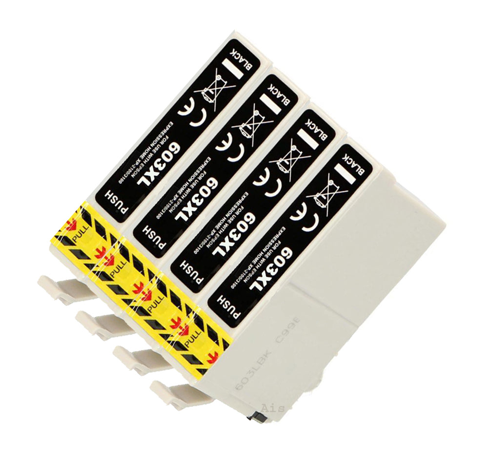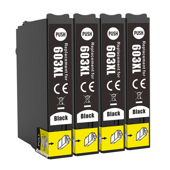 4 Compatible Black Ink Cartridge, Replaces For Epson 603XL, T03A1, NON-OEM