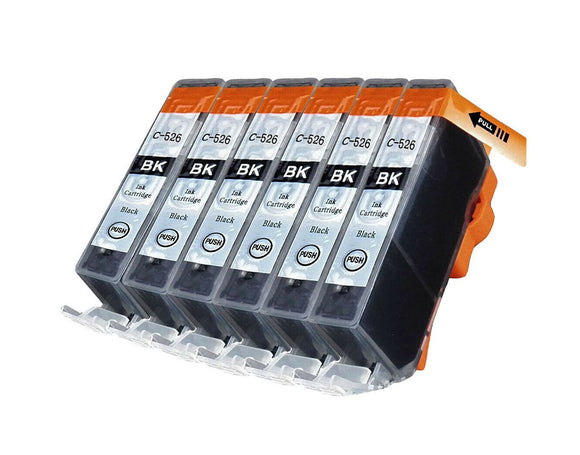 6 Compatible Black Ink Cartridges, Replaces For Canon CLI526BK CLI-526BK, NON-OEM
