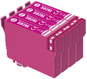4 Compatible High Capacity Magenta Ink Cartridges, For Epson 502XL, T02W3, NON-OEM