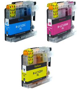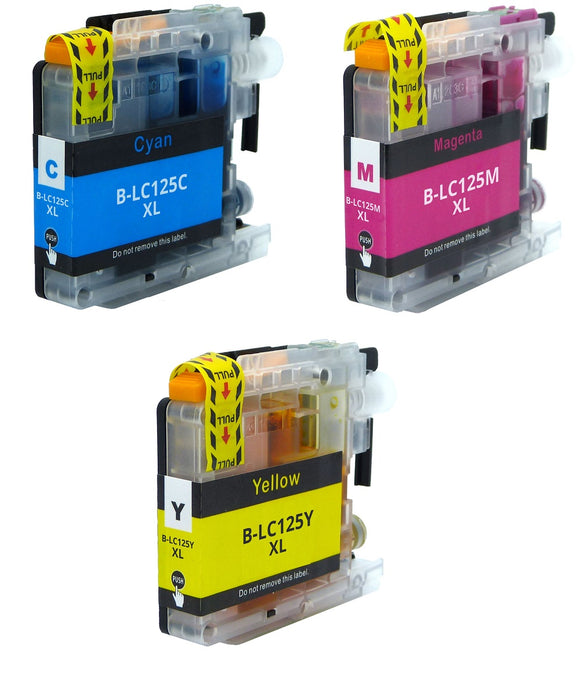 3 Compatible Ink Cartridges For Brother LC125XLC, LC125XLM, LC125XLY NON-OEM