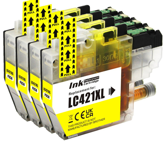 4 Compatible Yellow Ink Cartridge, Replaces For Brother LC421XLY NON-OEM