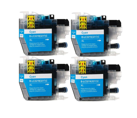 4 Compatible Cyan Ink Cartridge, Replaces For Brother LC3217C, NON-OEM