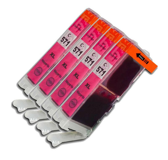 4 Compatible Magenta Ink Cartridges, Replaces For Canon CLI571XLM, NON-OEM