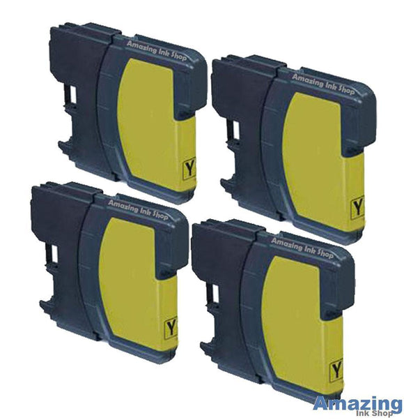 4 Yellow Compatible Ink Cartridges, Replaces For Brother LC980Y, LC1100Y NON-OEM