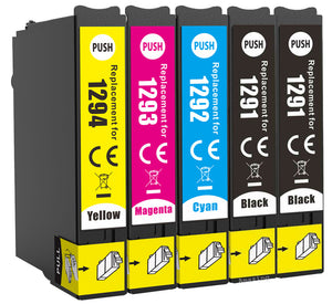5 Compatible E1295, Multipack Ink Cartridges, Replaces For Epson T1295, NON-OEM