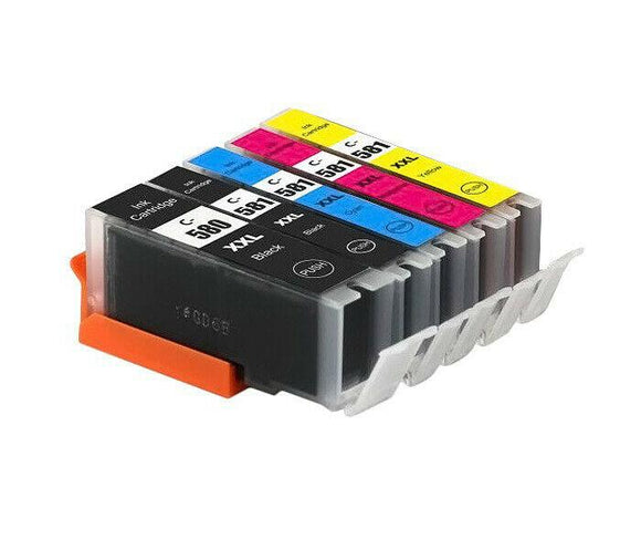 5 Compatible Ink Cartridges, For Canon PGI-580XXLBK, CLI-581XXLBKCMY, NON-OEM