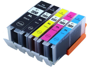 5 Compatible ink Cartridges, For Canon PGI-550XLBK, CLI-551XLBKCMY, NON-OEM