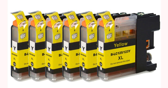 6 Compatible B123Y Yellow Ink Cartridges, Replaces For Brother LC123Y, LC-123Y, NON-OEM
