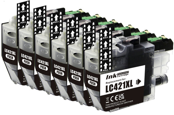 6 Compatible Black Ink Cartridge, Replaces For Brother LC421XLBK NON-OEM