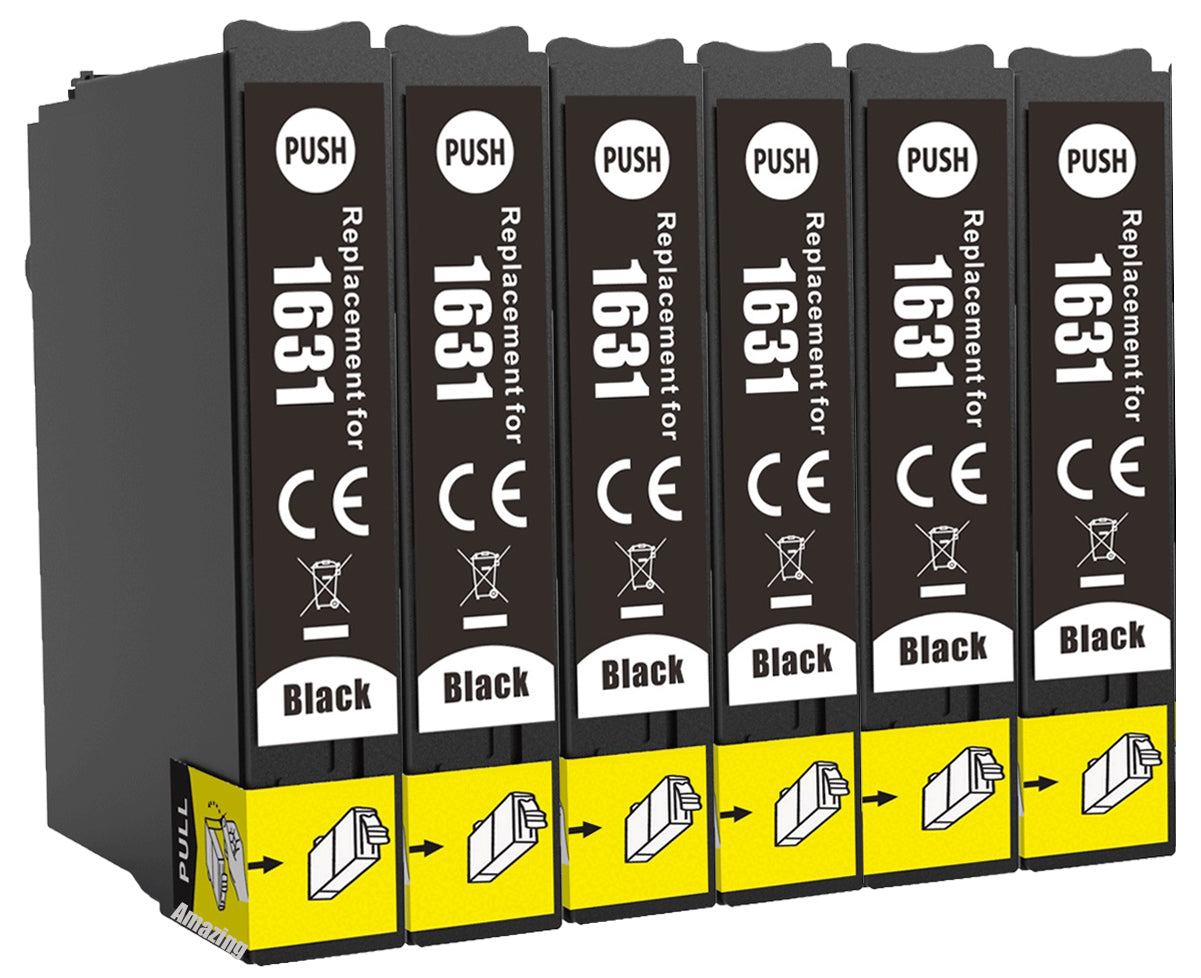 6 Compatible Black Ink Cartridges, Replaces For Epson 16XL, T1631, NON-OEM