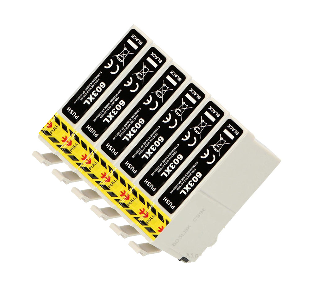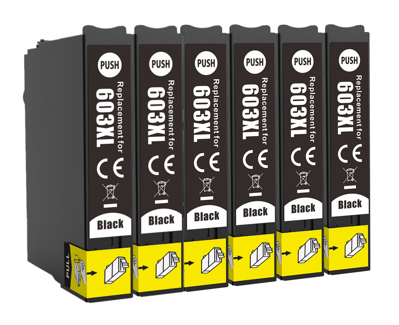 6 Compatible Black Ink Cartridges, Replaces For Epson 603XL, T03A1, NON-OEM