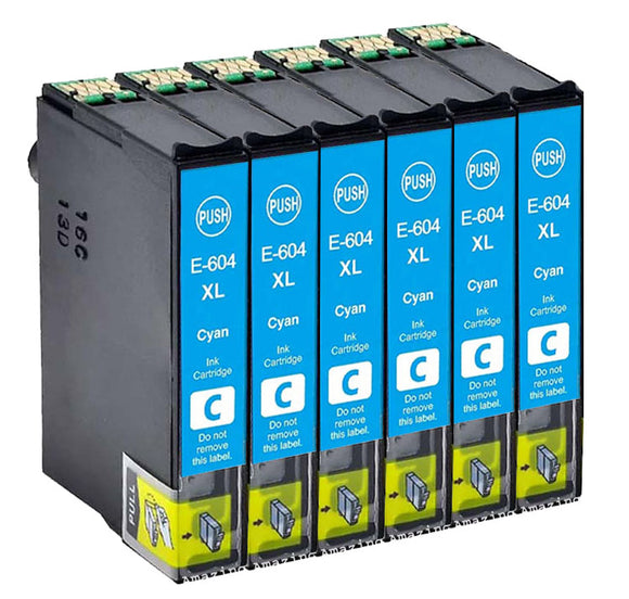 6 Compatible Cyan Ink Cartridges, For Epson 604XL, T10H2, NON-OEM