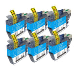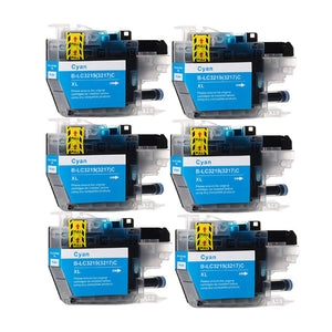 6 Compatible Cyan Ink Cartridges, Replaces For Brother LC-3219XLC, NON-OEM