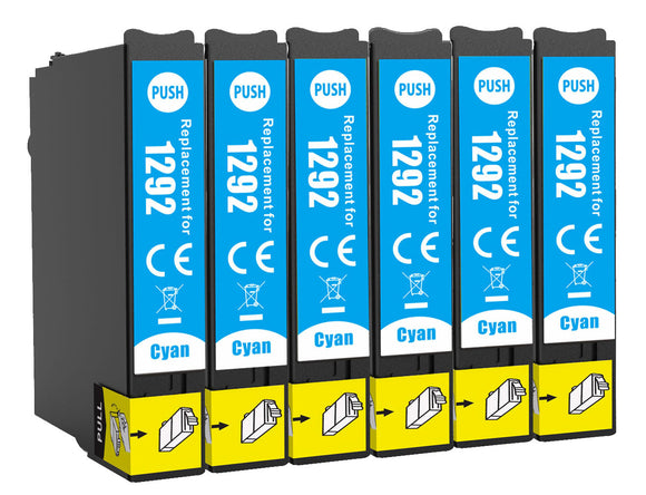 6 Compatible E1292, Cyan Ink Cartridges, Replaces For Epson T1292, NON-OEM