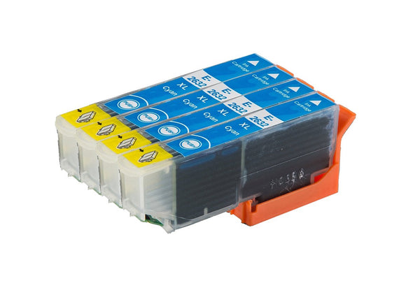 4 Compatible 26 XL, Cyan Ink Cartridges, Replaces For Epson 26XL, T2632, T263240, NON-OEM